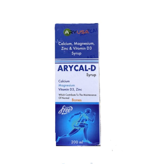 ARYUSA ARYCAL-D is a premium sugar-free nutritional syrup formulated to support strong bones, healthy teeth and active muscle function. It blends Calcium, Vitamin D3, Magnesium and Zinc to improve calcium absorption, boost bone mineral density and enhance overall growth and immunity.