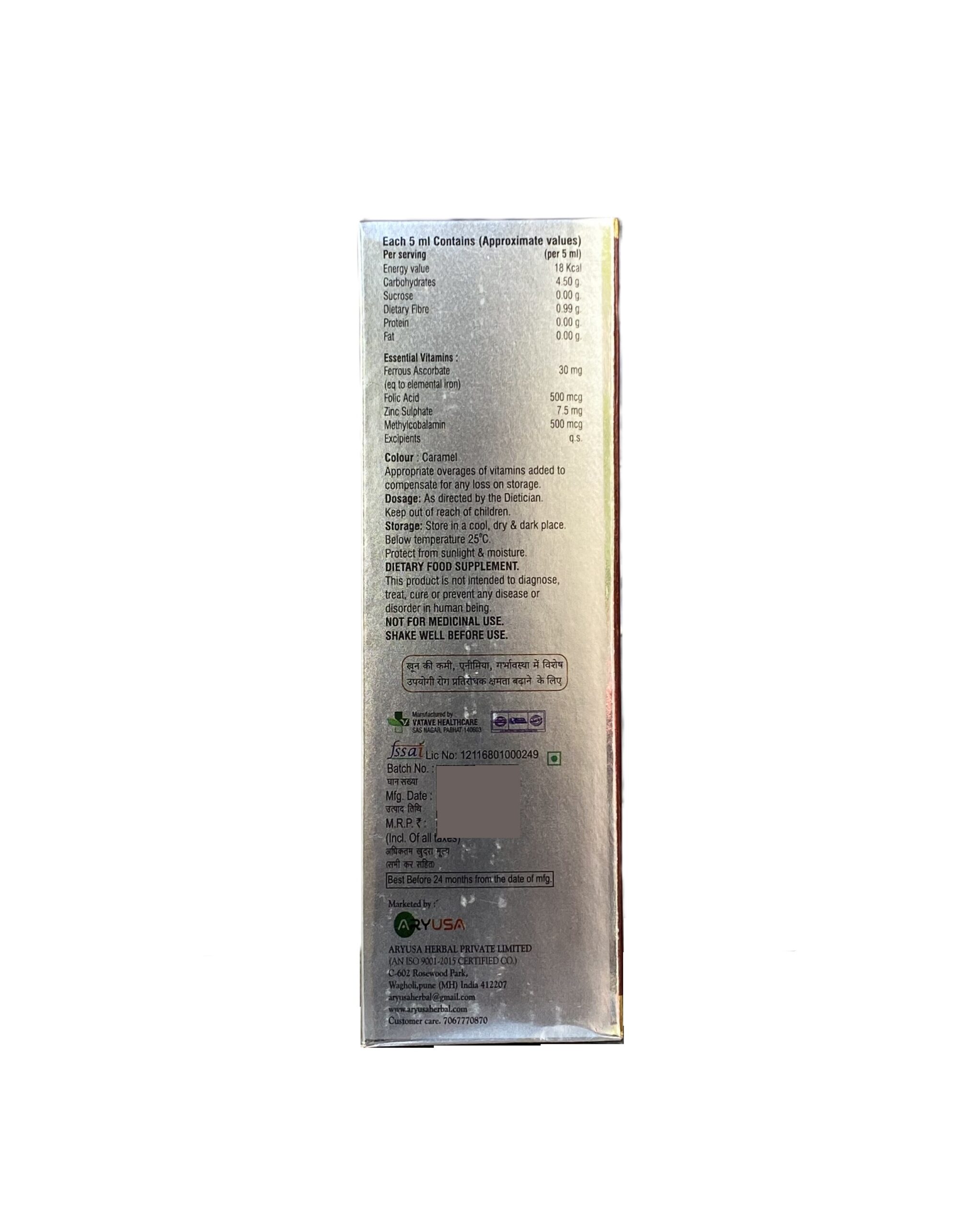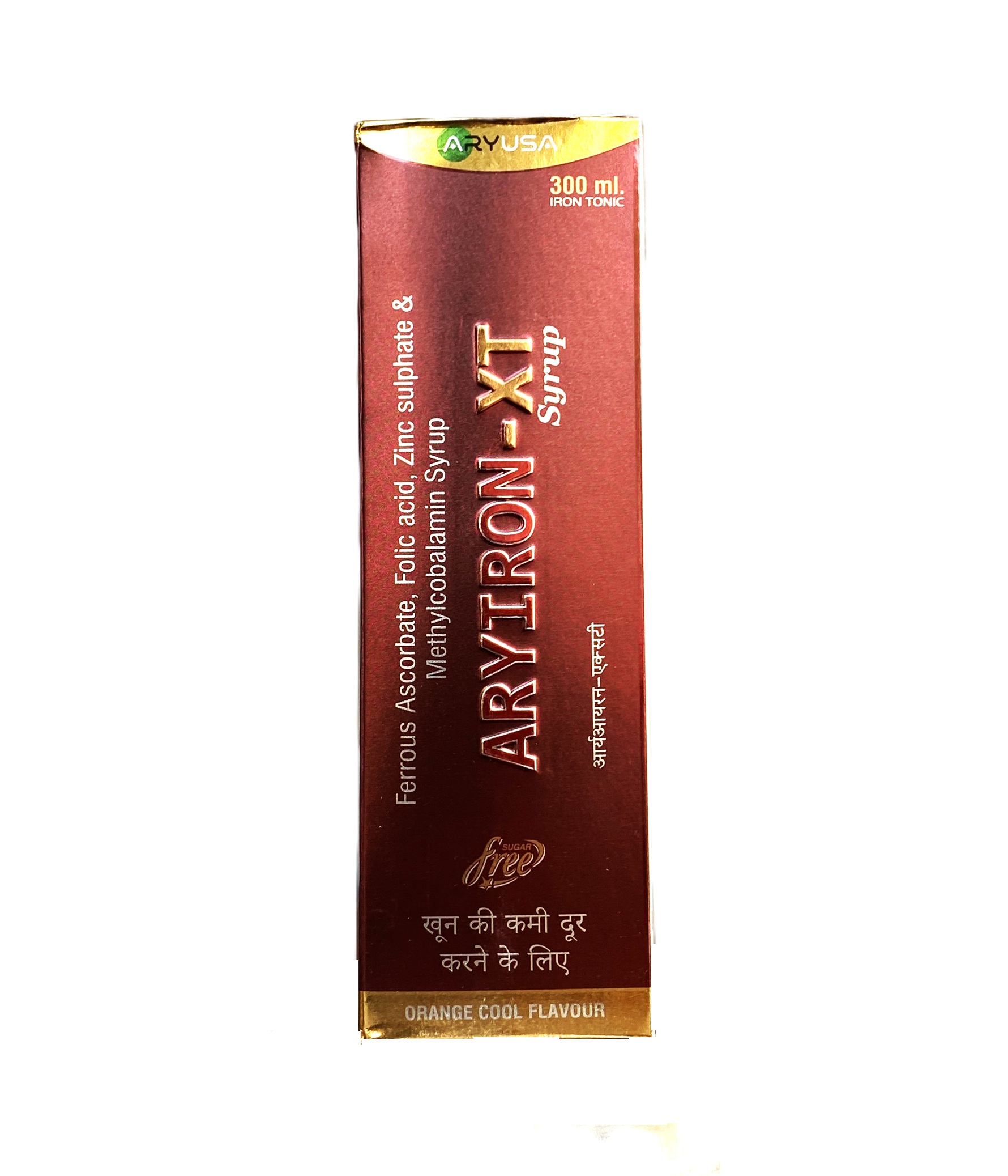 ARYiron-XT is a Vitmain B12, Iron, Folic Acid and Zinc Syrup It is a non constipating formula, Vegetarian formulation and is safe for people of all age group and It is recommended as regular dietary supplement, for anemia patients, pregnant women (as Iron and Folic acid supplement), Iron deficiency, Acute blood loss cases and women who have menorrhagia (women having prolonged or heavy bleeding in period cycle).
